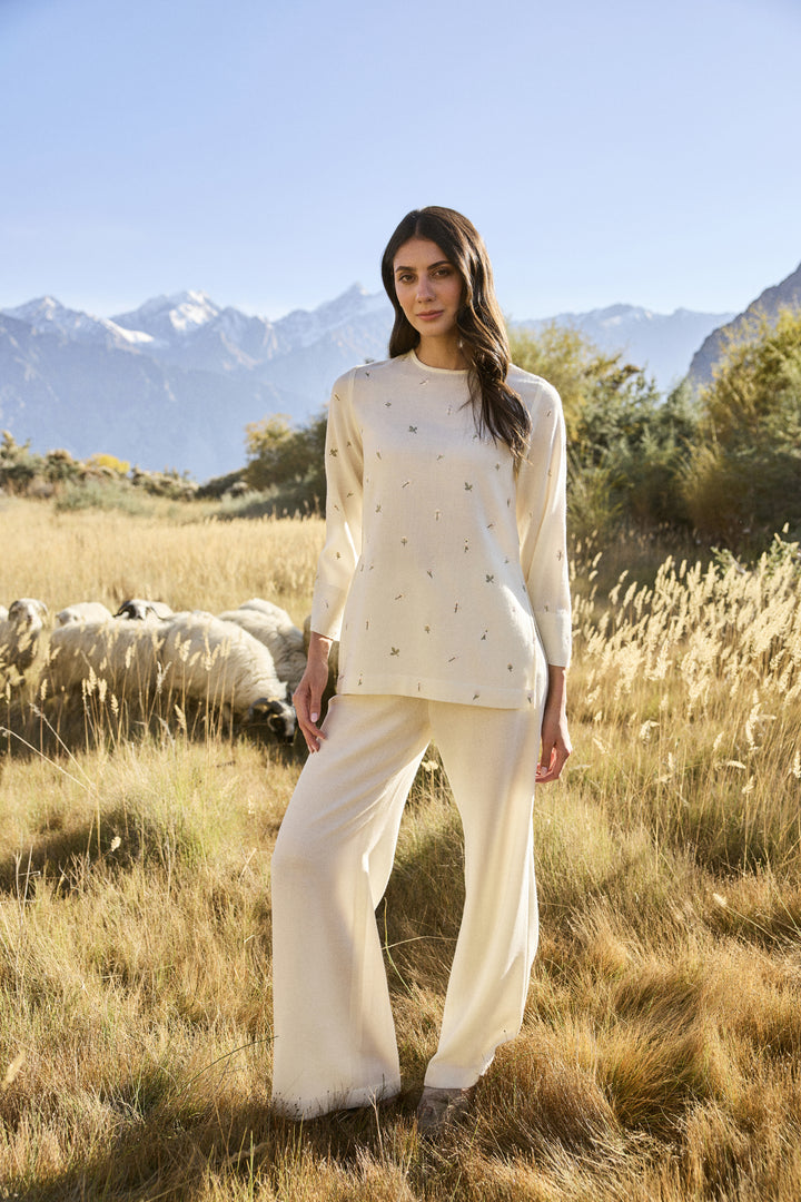 and bottoms made of warm wool, merino blends, cashmere, and cosy shapes ideal for snowy