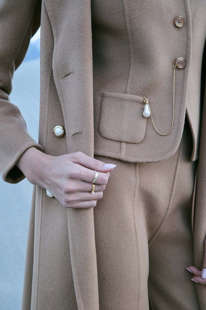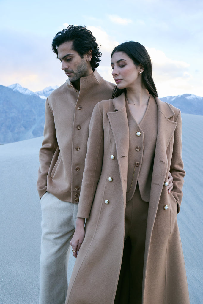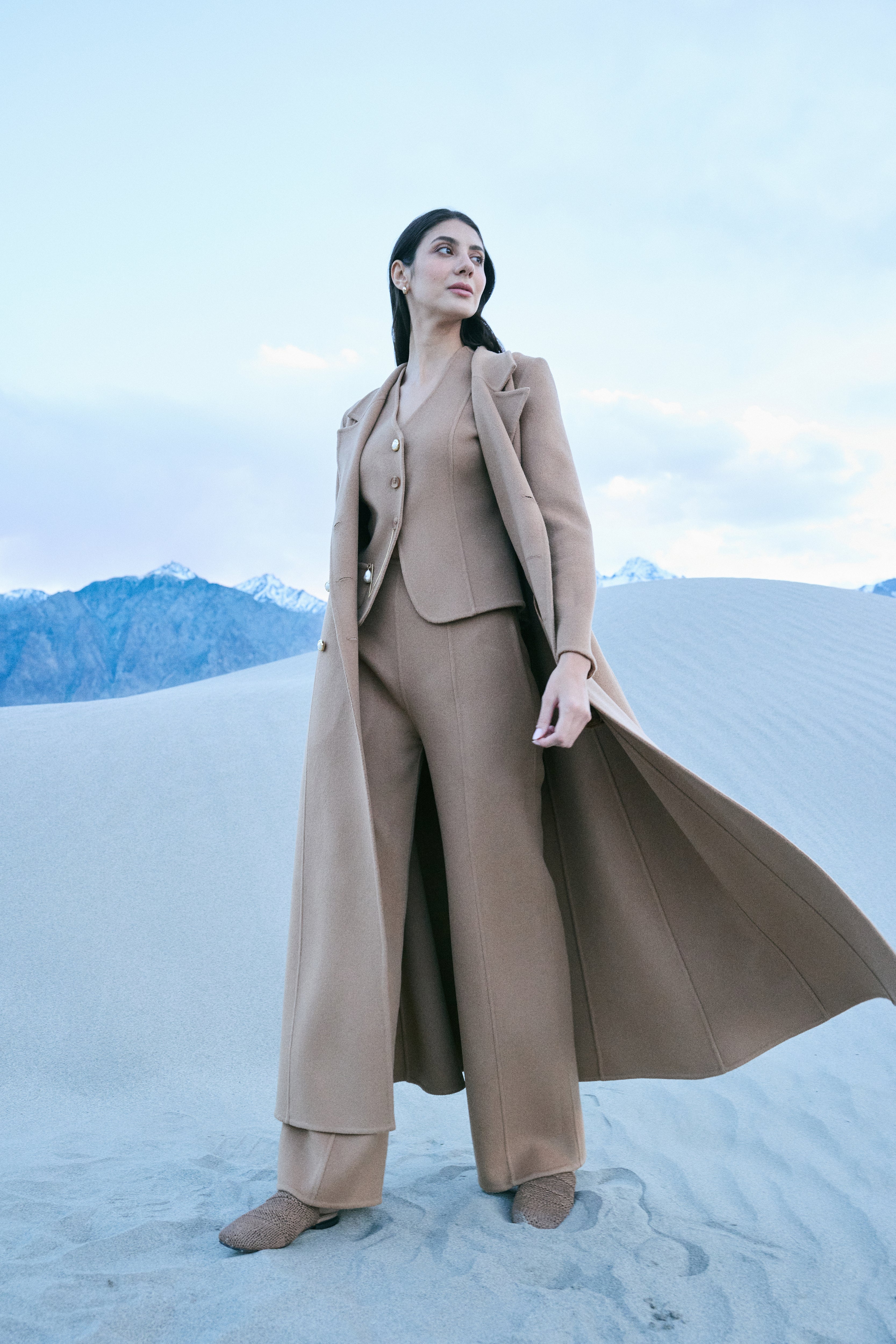 Cashmere-Silk-Merino Blend Pants (Warm Honey) - At the heart of this season lies our most luxurious fabric: a rare composition of 20% Cashmere, 60% Merino Wool, 10% Silk, and 10% Recycled Binding Fiber. Designed to carry you through the depths of winter with ease, the fabric combines the lofty softness of cashmere, the resilience of merino, and the lustrous drape of silk. Its construction is light as air yet intensely insulating, offering warmth without bulk. A dual-sided weave ensures that the same supple richness touches both skin and surface, while its fluid structure lends itself to precise tailoring and sculpted silhouettes. Elevated, enduring, and indulgent- this is outerwear at its most refined expression.Click Here