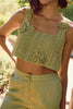 Made from soft, organic linen, this playful crop top is adorned with delicate lace embellishments and charming floral appliqué details that add a fresh, whimsical touch. The clean, minimal back lets the intricate detailing take center stage. Perfect for pairing as a co ord with our high waist linen pants or a flounce skirt for an effortlessly elevated look.