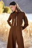 Made from lightweight, skin-soft wool with a faint herringbone weave, this jumpsuit features a kitten collar and comes with a delicate floral embroidered neck tie. The neck tie is detachable, allowing you to wear the jumpsuit with or without it. The back includes a long zip for comfortable wear, making it easy and convenient to slip in and out of.