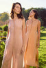 Crafted from 60 Lea soft organic linen, this sleeveless longline top blends minimalism with intricate details. The embroidered scallop edging along the neckline and front adds a delicate, artisanal touch, while the hidden button placket ensures a seamless, refined look. Designed with a straight, structured silhouette, it flows effortlessly, making it perfect for layering or wearing on its own. Pair it with matching linen bottoms for an elegant co-ord look