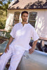 Crafted from soft, breathable linen, this men’s shirt features a clean, modern design with a band collar and a subtle half placket for effortless style. It has a relaxed fit with drop shoulders and a straight hemline for a contemporary silhouette. Ideal for casual outings or summer gatherings, this versatile piece pairs seamlessly with tailored trousers or linen shorts for an understated, refined look.