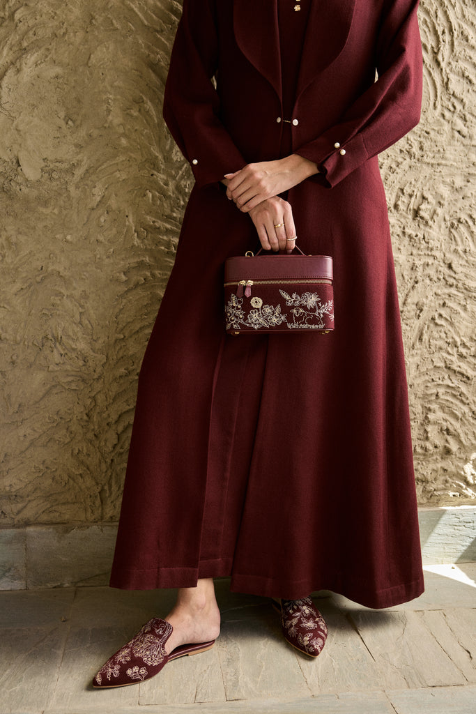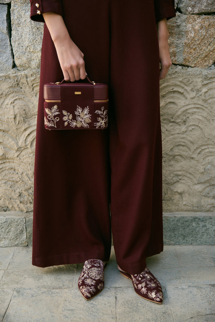Style them up with a matching Juniper Merlot handbag and a tonal winter ensemble like the Juniper Woolen Dress, MECO Woolen Jumpsuit with Woolen Shawl, or the AIRA Woolen Top in Merlot for a refined, coordinated look.