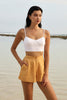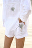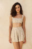 An all new addition to our linens is the rose print. Our new linen shorts are made in soft organic linen with front pleats and rose print patch pockets in the back. The side seam of the shorts have lace insert details. The waist has a straight waistband in the front with a micro rose print cladded button and an elasticated back for comfort fit.