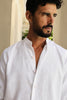 Slim fit, button down collar shirt made in 60 Lea organic linen with micro rose print cladded buttons in the front and on the cuff.