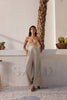 A corset body jumpsuit, with a plunge neckline in soft, organic linen. This jumpsuit comes with pad inserts, and an elasticated back with long back centre zip, for a comfortable, snug fit .The slim straps of the jumpsuit are adjustable and secured through a loop so you can modify the neckline as per your desired fit. Its statement, centre stage and so easy to style.