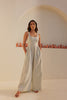 Soft linen jumpsuit with structured fit on the chest flowing into a wide leg bottom. The back of the waist in elasticated for comfort and size fluidity, along with a side zipper to enhance the body fit along with ease in wearability.