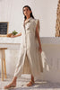 Soft linen multifuctional overlay dress with pocket details, pop shoulders and exaggerated side panels. The overlay dress comes with a linen belt making it a 3 way transitional outfit. 1. Wear it as a jacket; 2. Wear it as a flowy solid midi dress (without the belt) 3. Belt it up for a formal, structured look.