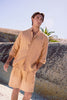 Designed for effortless sophistication, these soft organic linen shorts feature a seamless blend of structure and ease. The front showcases a tailored waistband with a button fastening and zip fly, while the elasticated back ensures a comfortable fit. A pull-out drawstring adds versatility, allowing for an adjustable waist. Complete with practical side and back pockets, these shorts are the perfect balance of refinement and relaxed charm.
