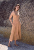 Feather light ~ Fluid Fit ~ Glossy Touch ~ 95% Micro Modal and 5% Spandex. The name SKINS comes from the nature of the fabric, which feels second to skin when worn. SAND’s Luxe Jersey fabrics are sought out for their incredible creamy softness and anti-shrinkage properties. It's prime uniqueness is it's extremely breathable character yet an excellent moisture absorbing profile. Our new luxe jersey midi dress has a round neck and slim cut shoulder sleeves fitted on the upper body and falling into a flare flounce. The luxury of this outfit is instantly felt when it comes in contact with your skin because of it's creamy softness and flowing silhouette.