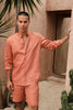 Soft organic linen shorts with an elasticated back and a trouser waistband in the front with button fastening and a pull-out drawstring with a zip fly. The shorts come with side and back pockets.
