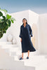 Fluid fit, soft wool kaftan dress with a V neck, side pockets and wide sleeves. The sleeves of the kaftan dress have a contrast slim detailing in ivory, breaking the monotany of the solid colour.