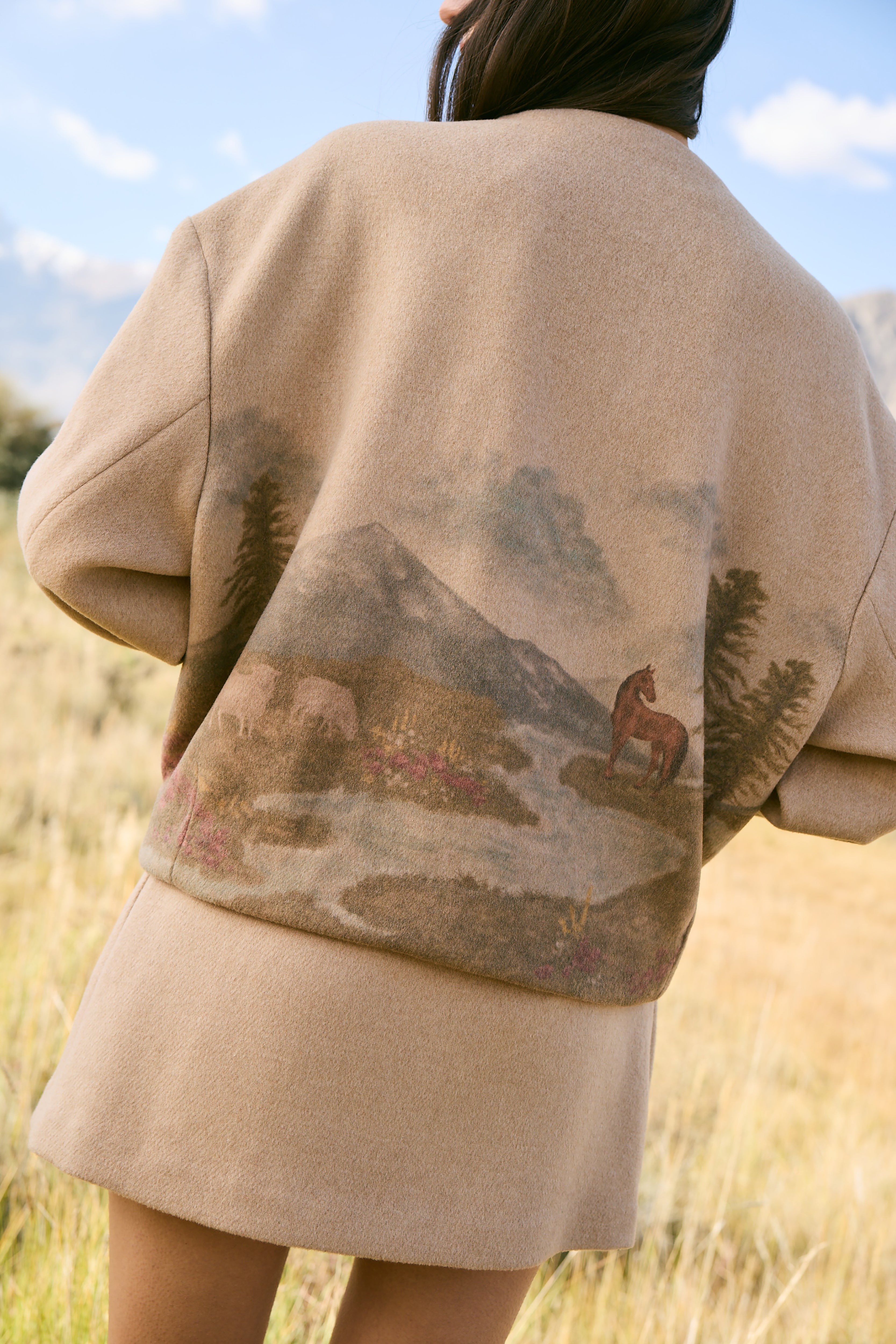 Merino Wool Blend Zip Up Jacket & Merino Wool Blend Short Skirt (Oatmeal)