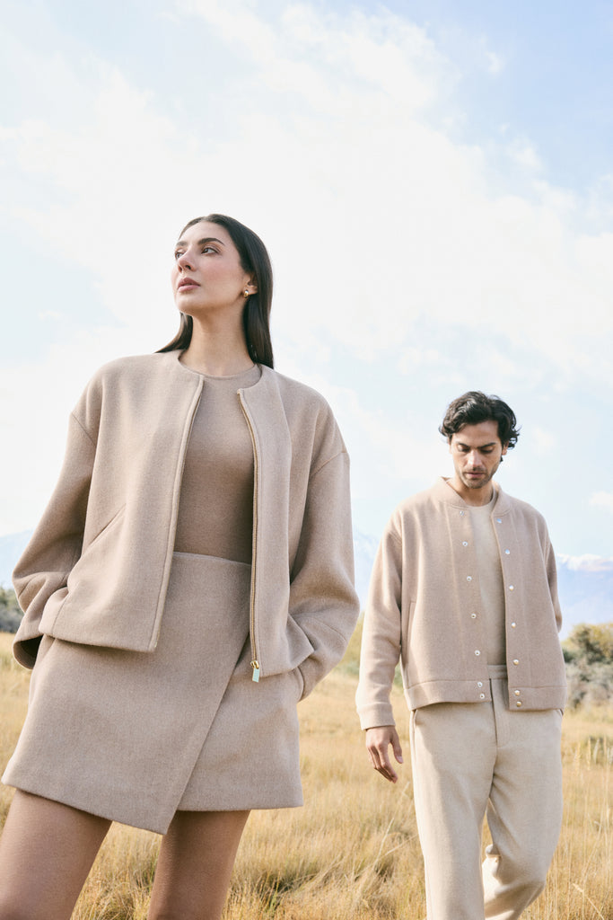 Merino Wool Blend Zip Up Jacket (Oatmeal) - Launching all-new Merino Wool Blend. A blend of 50% merino wool and 50% recycled fiber (480 gsm), this wool blend offers an ultra-soft hand feel yet remains cozy and warm. Designed to provide comfort in temperatures as low as 5°C, the fabric feels balmy against the skin, enhancing the wearing experience.Click Here