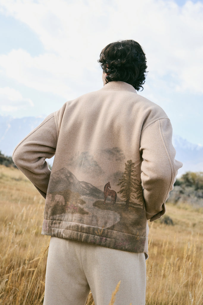 Valley Print Varsity Jacket -Man (Oatmeal)