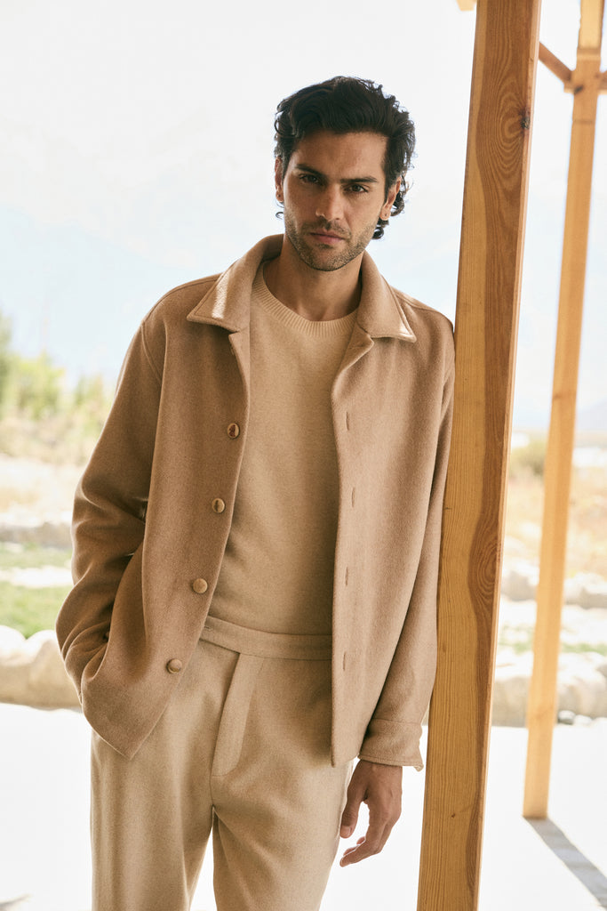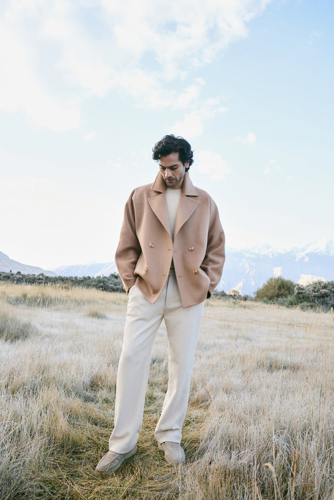Cashmere-Silk-Merino Blend Short Coat-MAN (Warm Honey)
