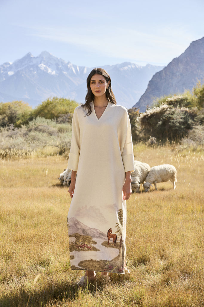 Valley Print Woollen Kaftan (Ivory)