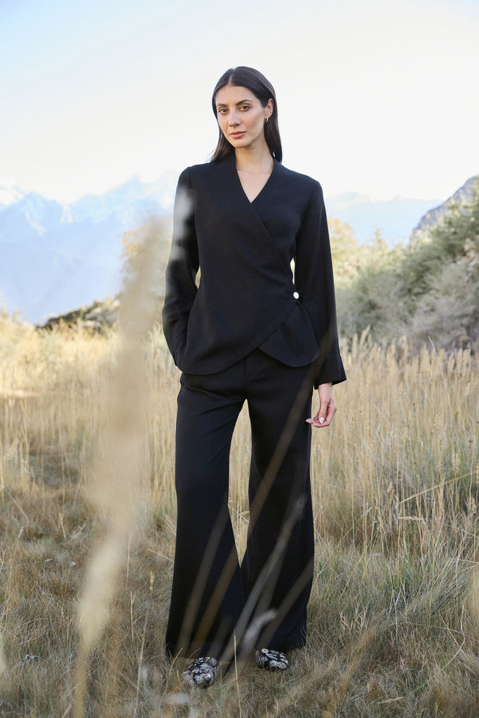 Style them tone-on-tone with our black tops and jacket for a sleek monochrome look, or contrast them with lighter shades like Ivory or Valley Clay for timeless sophistication.