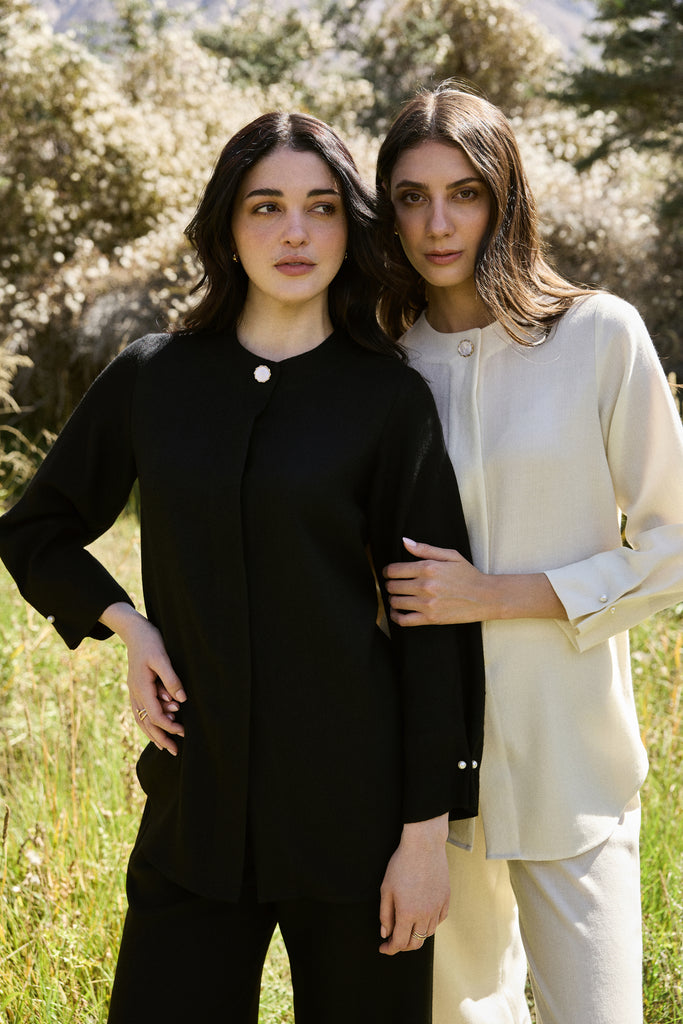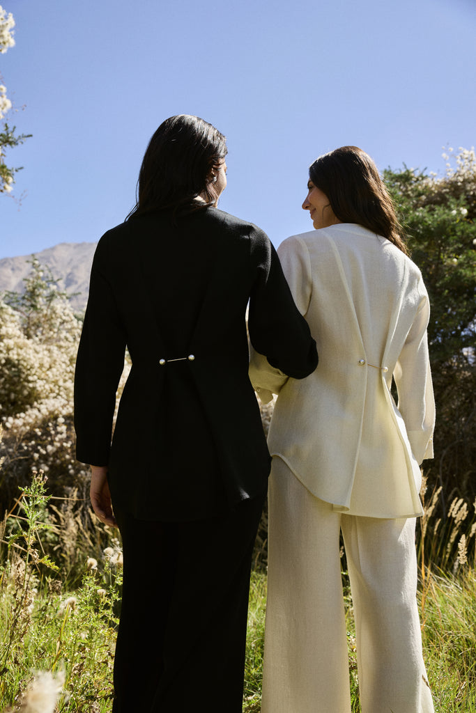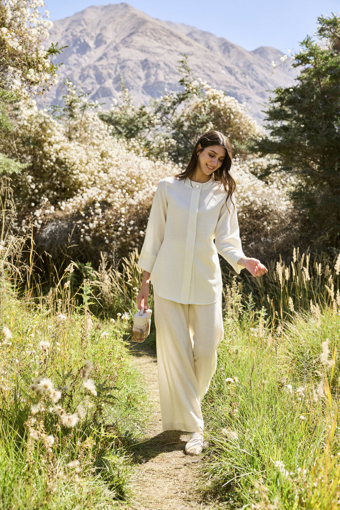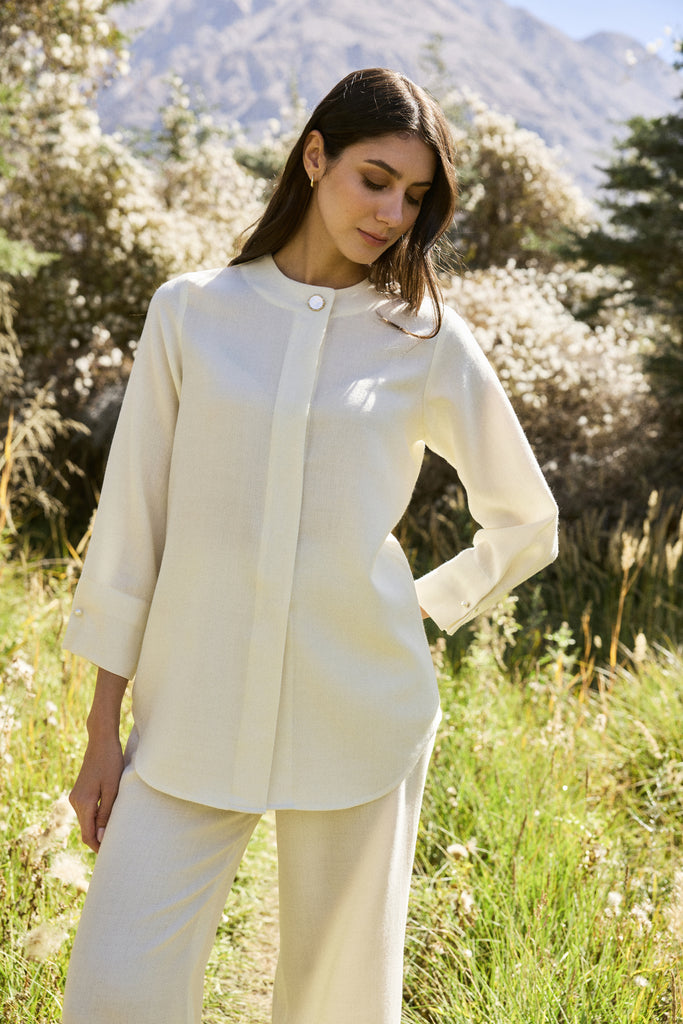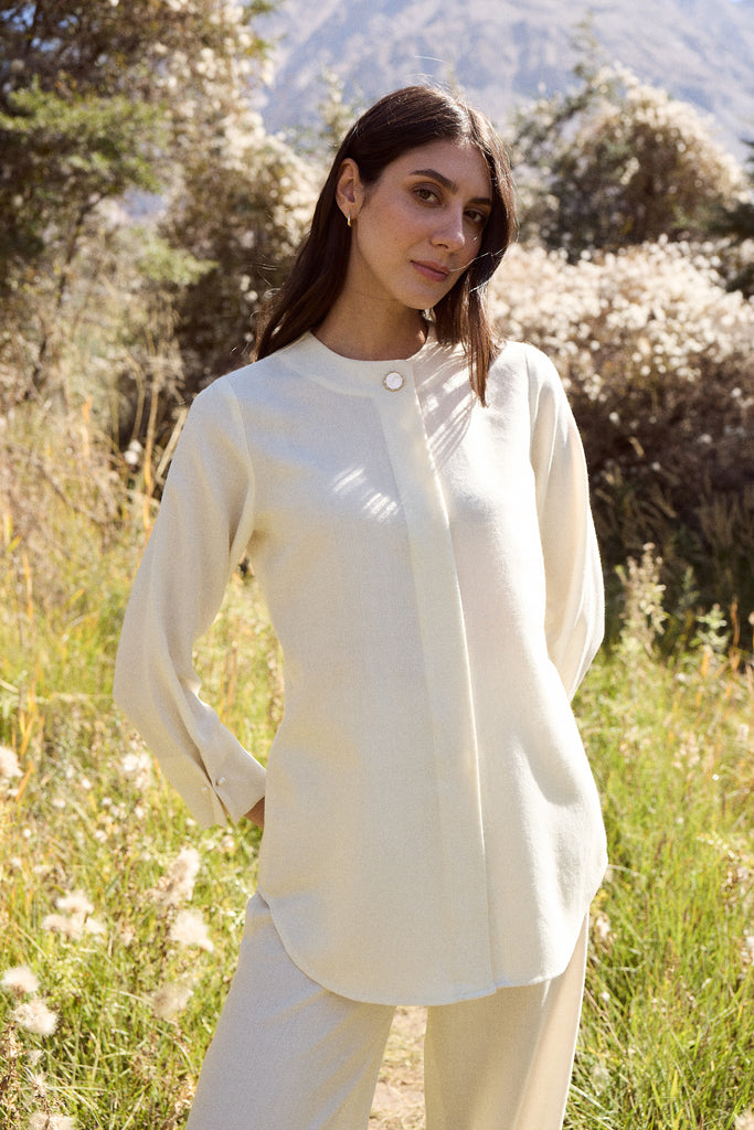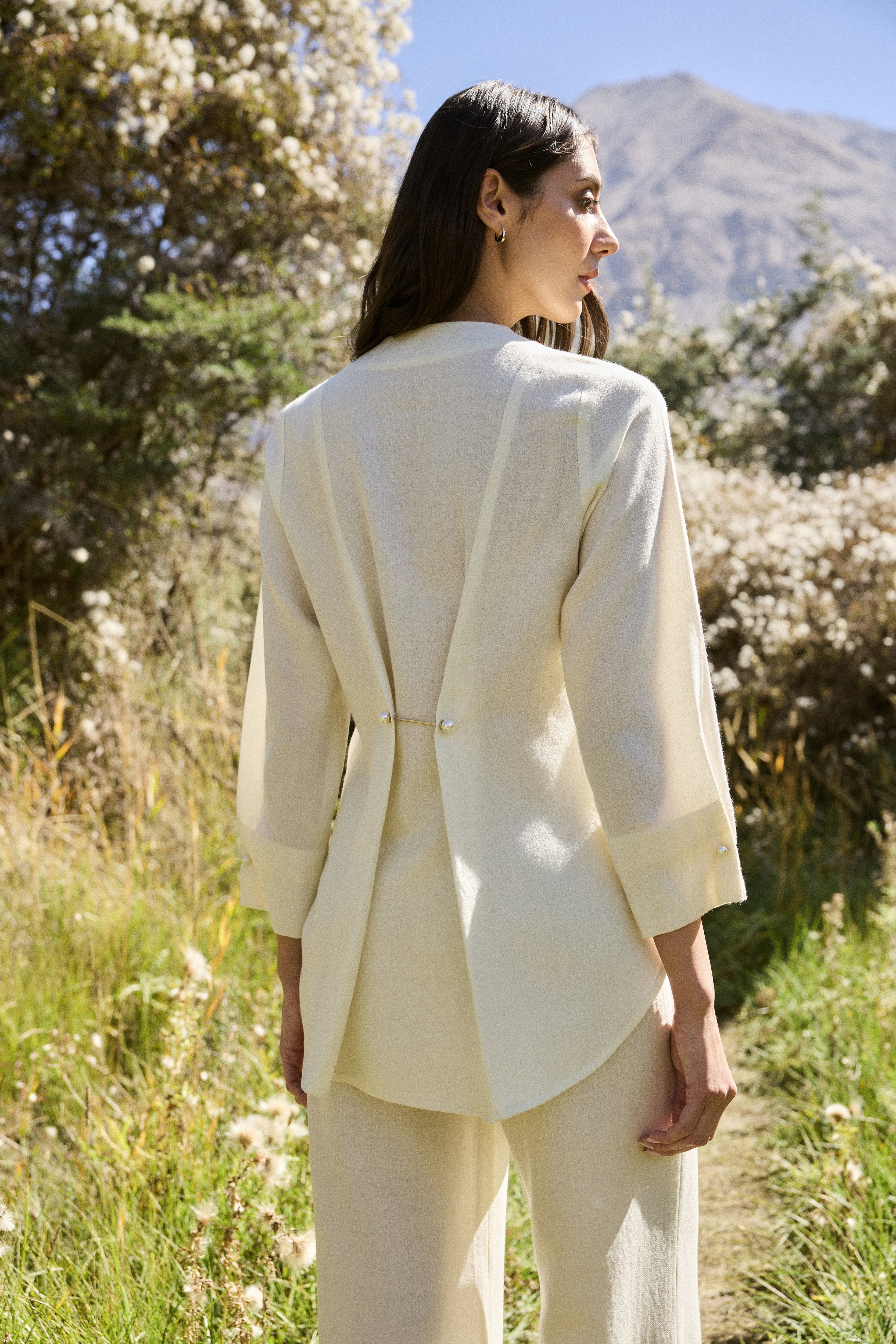 An elevated essential that flows with quiet elegance, pair it with its matching tailored ivory pants for a polished, coordinated look.