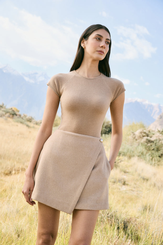 Merino Wool Blend Short Skirt (Oatmeal)