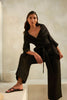 The SAND Kimono. Exaggerated scarf collar kimono with a waist wrap folding into a front knot. The beautifully crafted collar can be manipulated and styled two ways- with it wrapped around your neck or pulled down over your shoulders, to make it into a wide off shoulder with an open neck.