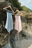 Our basic bare back top with a high neck, fastened with shell finished drawstrings at the nape of the neck and the back.