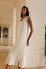 Made in our all new seersucker fabric, our cotton midi is your everyday dress. It has a V neck, wide cut sleeves. Easy to dress up or down, you can also add an overlay for a layered look.