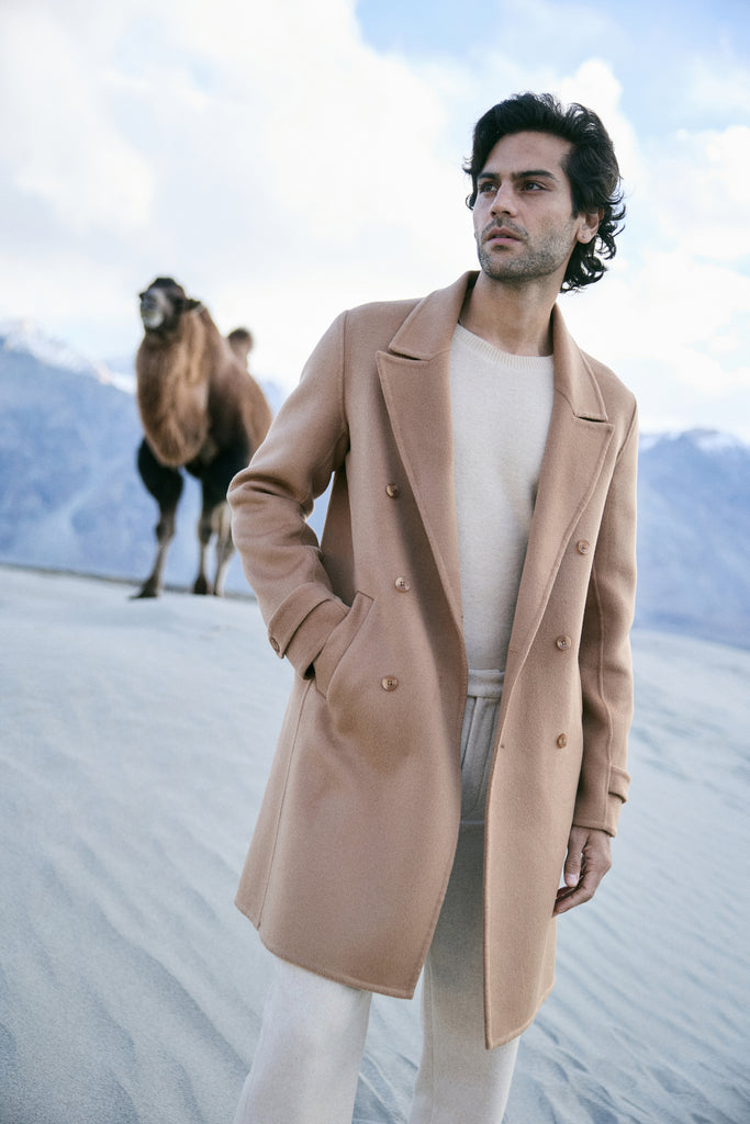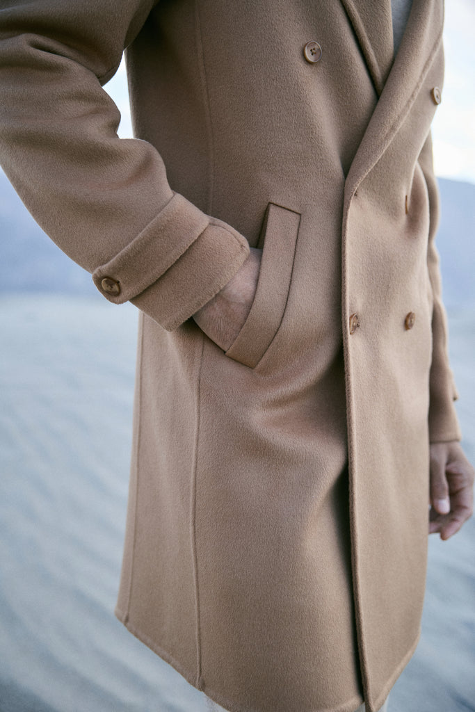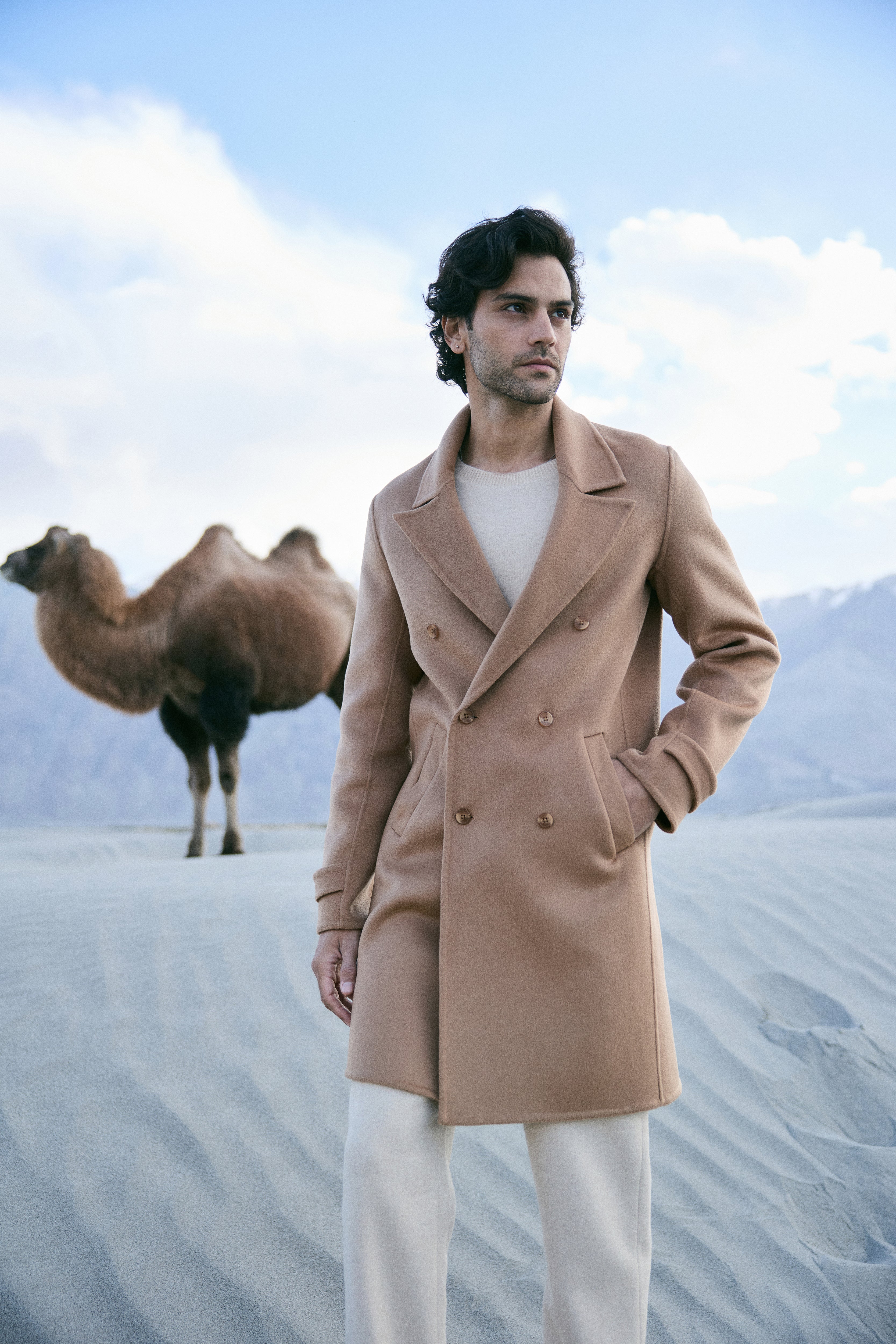 Cashmere-Silk-Merino Blend Long Coat-MAN (Warm Honey) - At the heart of this season lies our most luxurious fabric: a rare composition of 20% Cashmere, 60% Merino Wool, 10% Silk, and 10% Recycled Binding Fiber. Designed to carry you through the depths of winter with ease, the fabric combines the lofty softness of cashmere, the resilience of merino, and the lustrous drape of silk. Its construction is light as air yet intensely insulating, offering warmth without bulk. A dual-sided weave ensures that the same supple richness touches both skin and surface, while its fluid structure lends itself to precise tailoring and sculpted silhouettes. Elevated, enduring, and indulgent- this is outerwear at its most refined expression.Click Here