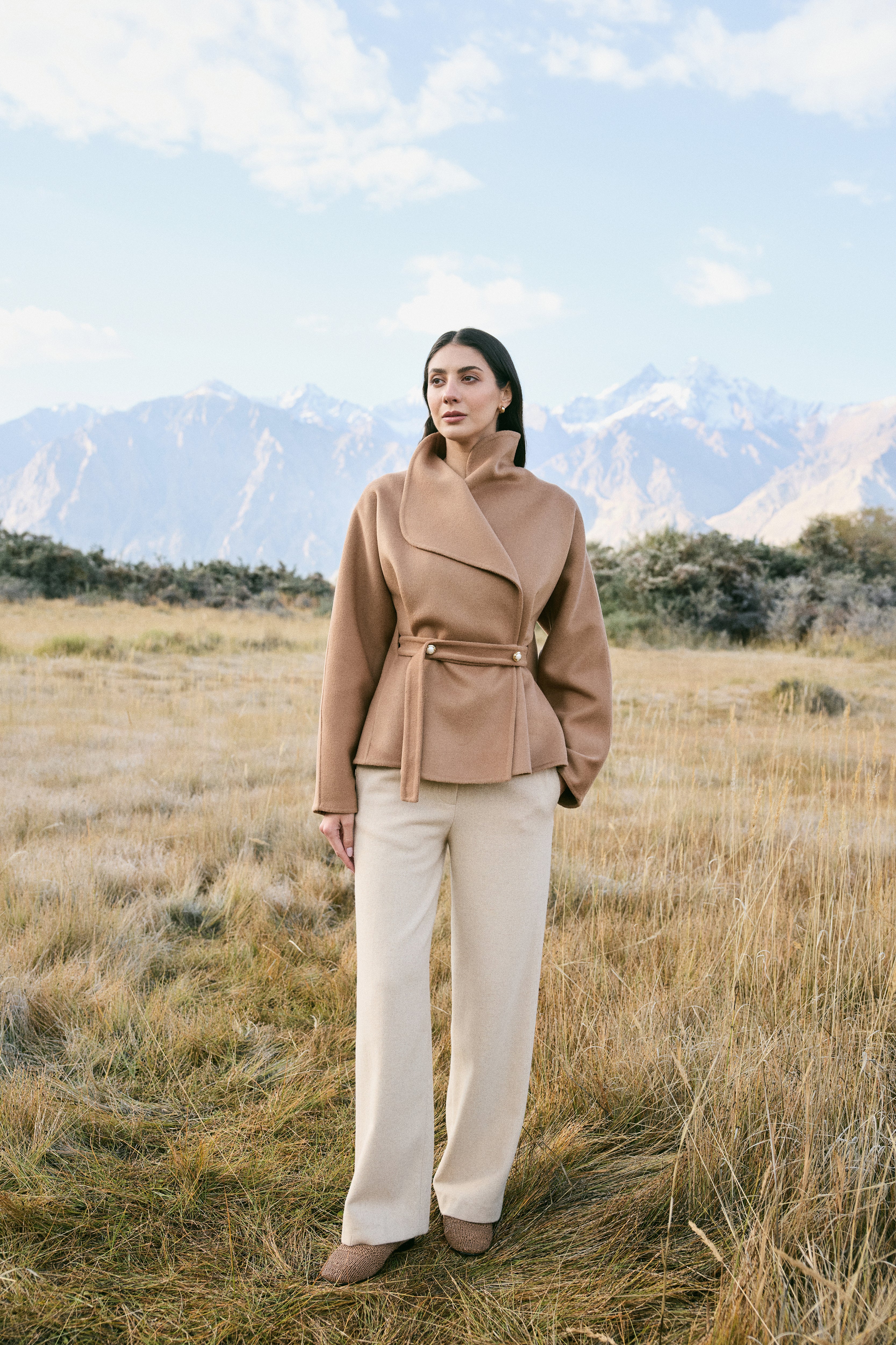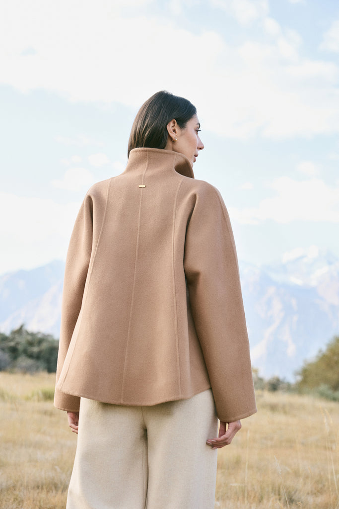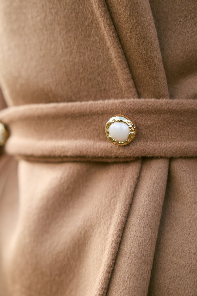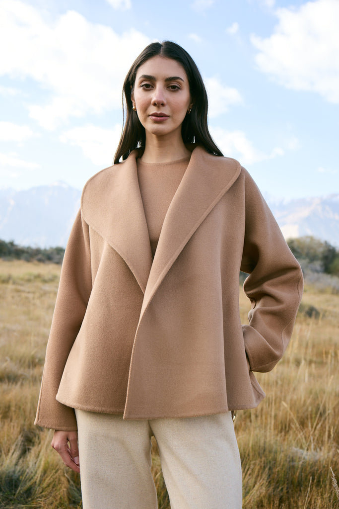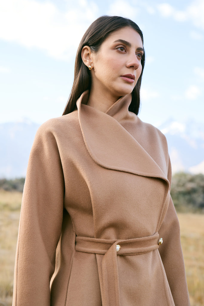 Cashmere-Silk-Merino Blend Wrap Coat (Warm Honey) - At the heart of this season lies our most luxurious fabric: a rare composition of 20% Cashmere, 60% Merino Wool, 10% Silk, and 10% Recycled Binding Fiber. Designed to carry you through the depths of winter with ease, the fabric combines the lofty softness of cashmere, the resilience of merino, and the lustrous drape of silk. Its construction is light as air yet intensely insulating, offering warmth without bulk. A dual-sided weave ensures that the same supple richness touches both skin and surface, while its fluid structure lends itself to precise tailoring and sculpted silhouettes. Elevated, enduring, and indulgent- this is outerwear at its most refined expression.Click Here