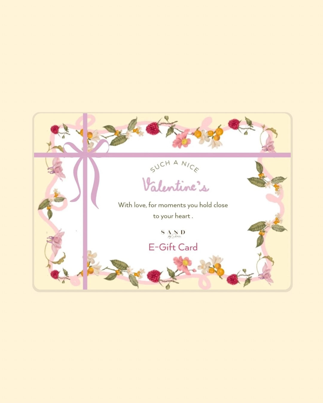This is an e-gift card and can only be used for purchases on www.sandbyshirin.com