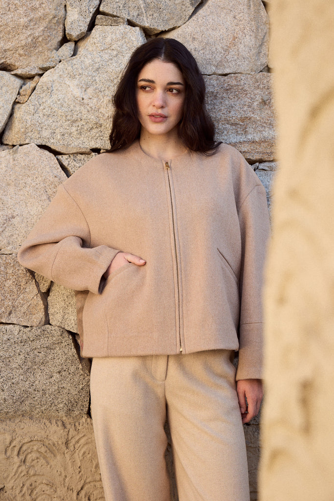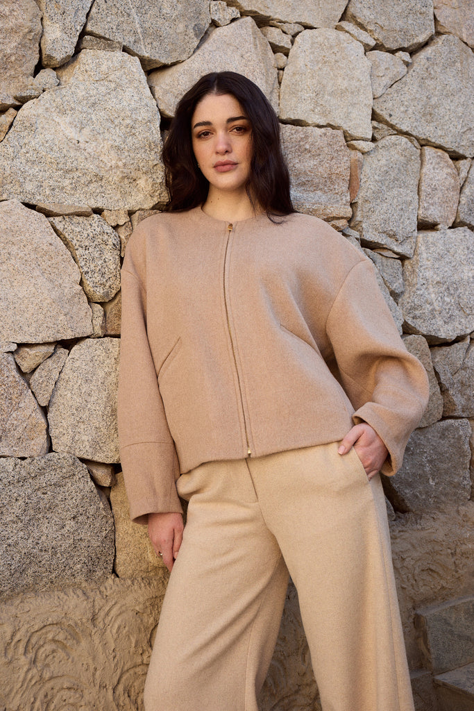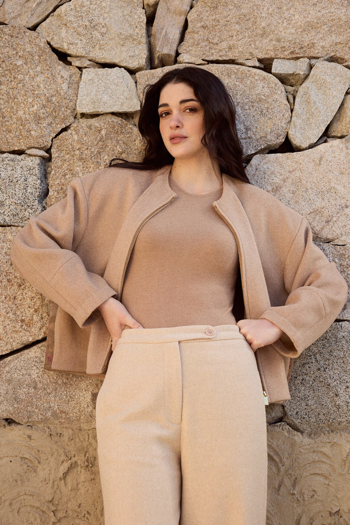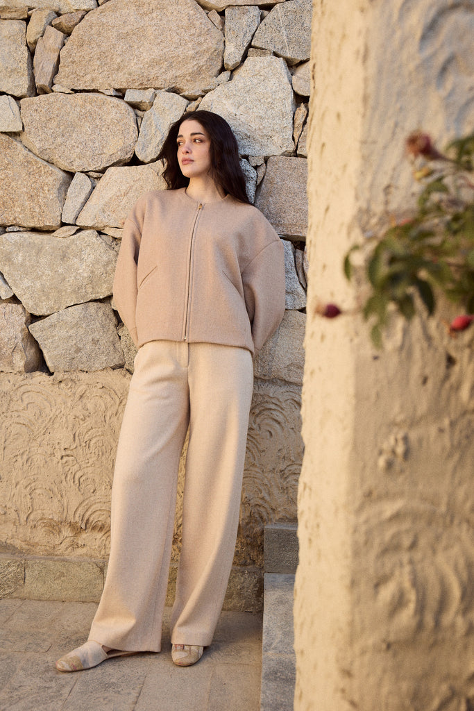 Merino Wool Blend Zip Up Jacket & Merino Wool Blend New Pants (Oatmeal)