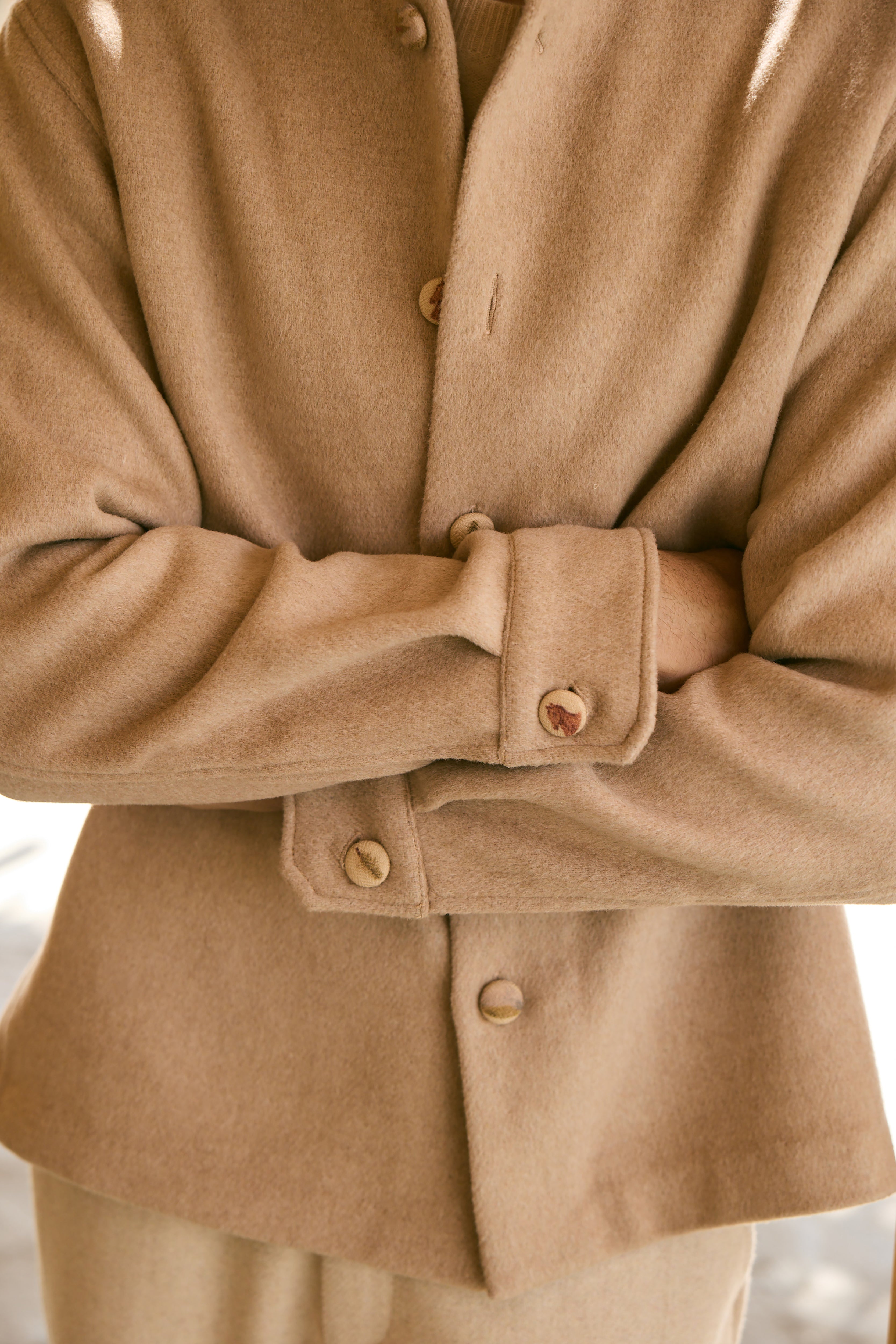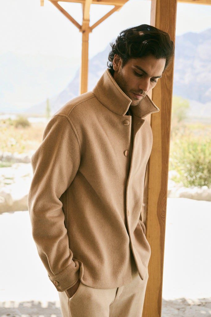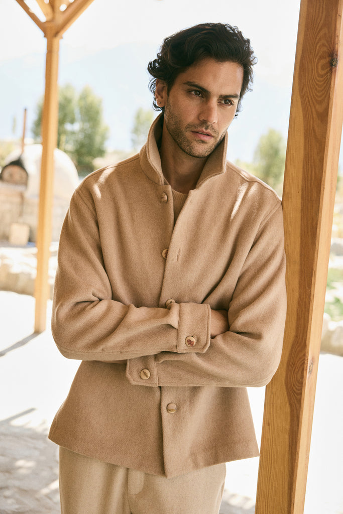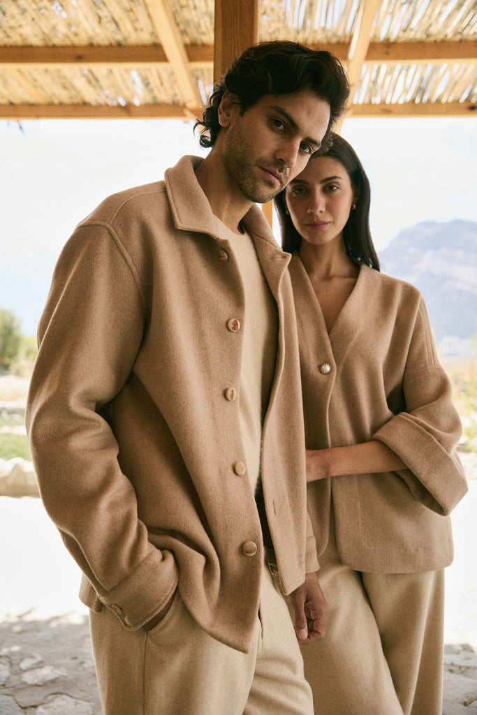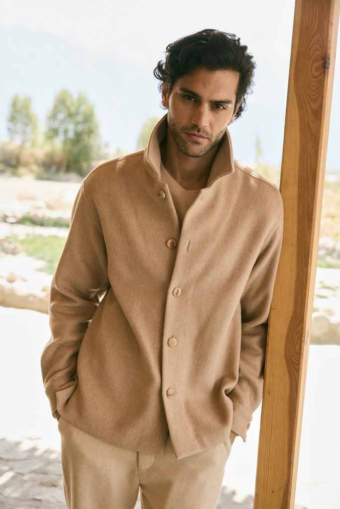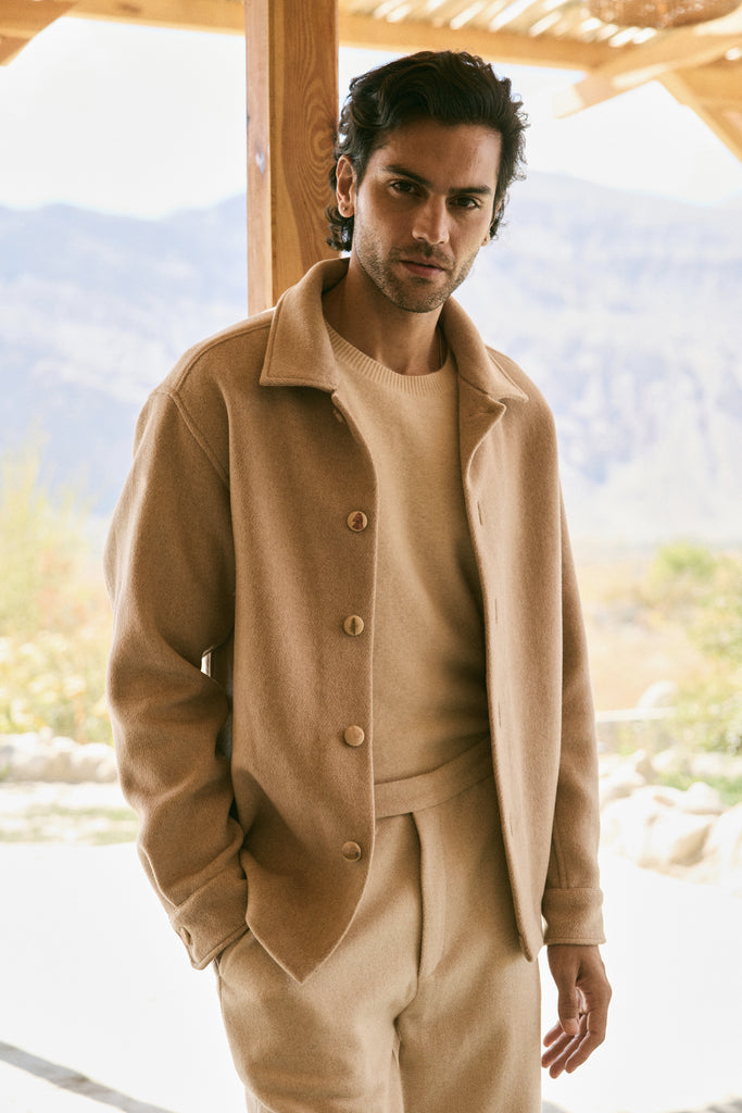 Valley Button Print Overshirt & Merino Wool Blend New Trousers- MAN (Oatmeal)