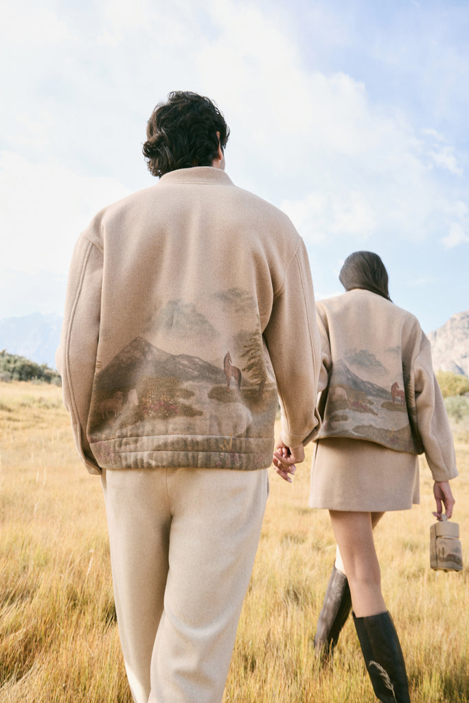 Valley Print Varsity Jacket & Merino Wool Blend New Trousers- MAN (Oatmeal)